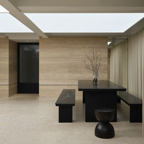 The renovation of an old building into the "House Of Faithe" concept space is a delicate and thoughtful project. The design focuses on using interior architecture as a simple yet elegant backdrop to highlight the wedding dress. By using a single material throughout the space, we’ve created a unified and harmonious environment.